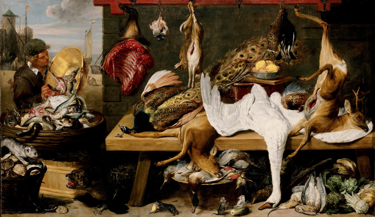 While still life dates back as far as early Roman antiquity, it flourished in the Netherlands during the early 1600s or what was known as the Dutch Flemish golden age of art. This period existed during the Baroque period of art. Still lifes were the artists forum to display skill in painting objects in a realism style with great detail and dramatic lighting effects. A literal cornucopia of food, tableware and intricate cloth patterns and subtle folds in table cloths and flowers all challenged painters.